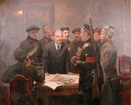 Б. Владимирский. В.И.Ленин и И.В. Сталин в Смольном. 1940