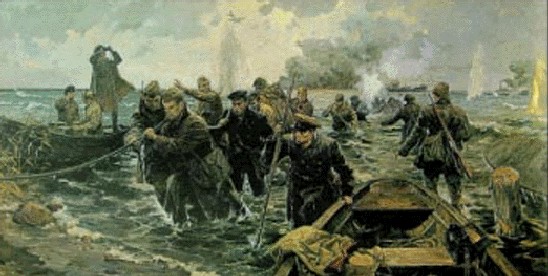 А. Семенов. Прокладка кабеля через Ладогу. 1941 год. 1983