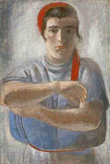 А. Самохвалов. Комсомолка. Работница, засучивающая рукава. 1929