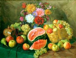 Н. Калмыков. Натюрморт с цветами и фруктами. 1950