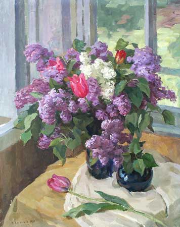 Н. Калмыков. Сирень и тюльпаны. 1965