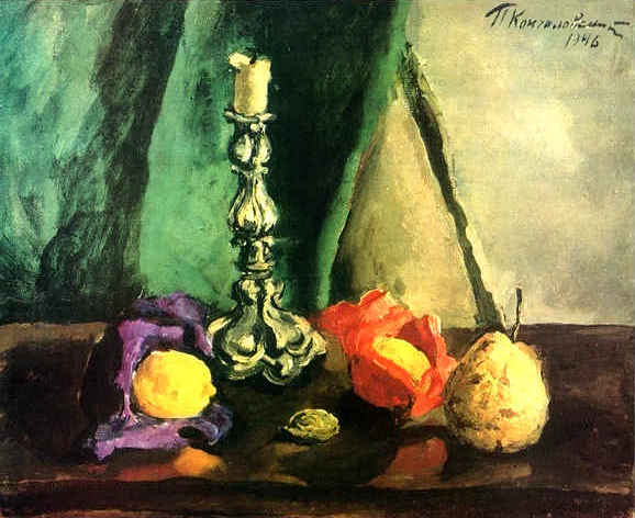 П. Кончаловский. Натюрморт с подсвечником и грушами. 1946