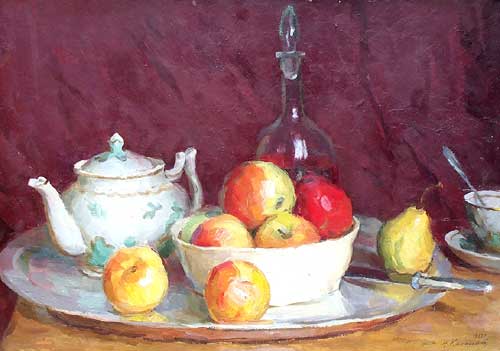 Н. Калмыков. Натюрморт с яблоками и грушами. 1953