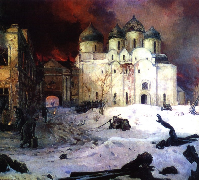 Кукрыниксы. Бегство фашистов из Новгорода. 1944