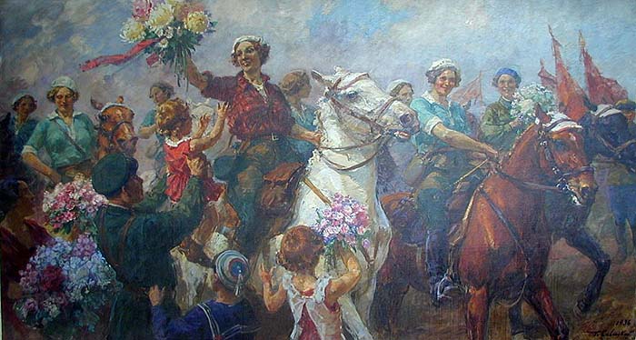 Г. Савицкий, В. Ефанов. Жены командиров Красной Армии на конях. 1936