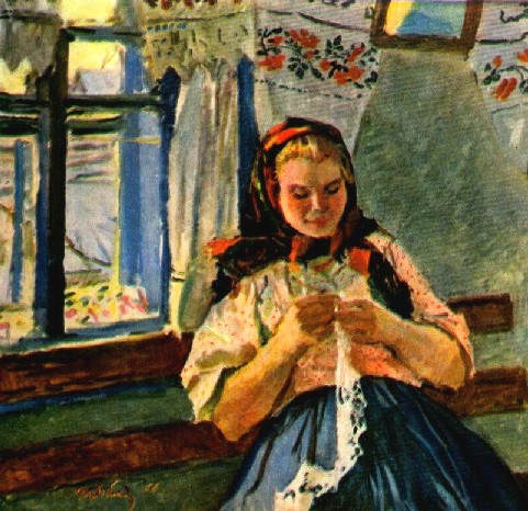 Т. Яблонская. За вязанием.
