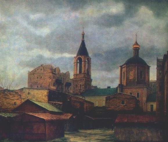 В. Дементьев. Облачный день. Московский дворик. 1976