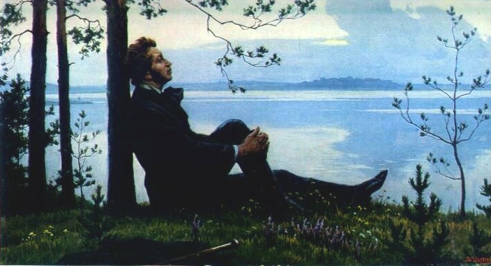 Б. Щербаков. Пушкин над озером в вечерний час. 1978